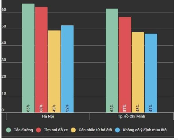 Số liệu còn chỉ ra rằng, người dân hai thành phố có thái độ khá tích cực với các dịch vụ như Uber, hay Grab. Cụ thể, có đến 42% người sở hữu ôtô ở TP.HCM đồng ý đây là một phương thức thay thế khả thi và 31% cho rằng nó có thể thay thế ôtô cá nhân hoàn toàn. Ba nguyên nhân chính mà họ ủng hộ các dịch vụ này là sự linh động khi sử dụng, tiết kiệm thời gian khi không phải tìm chỗ đỗ xe và chi phí rẻ hơn nhiều so với taxi truyền thống.