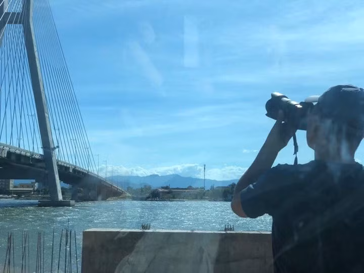 Nhà nhiếp ảnh Trần Tuấn Việt chụp ảnh bên cầu Nhật Lệ 2-Quảng Bình