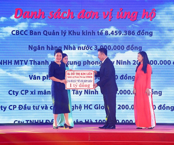 Lãnh sự Nam Phi tại TP Hồ Chí Minh, bà Đỗ Thị Kim Liên ủng hộ 1 tỷ đồng vào Quỹ "Đền ơn đáp nghĩa" của Tây Ninh.