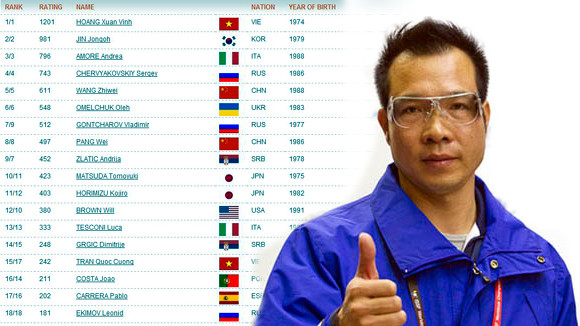 Theo BXH tháng 5 của Liên đoàn bắn súng thế giới (ISSF), xạ thủ Hoàng Xuân Vinh của Việt Nam xếp thứ nhất nội dung 10m súng ngắn hơi nam. Cụ thể, Xuân Vinh đứng đầu với 1201 điểm, bỏ xa người xếp nhì là nhà vô địch Olympic London 2012 người Hàn Quốc, Jin Jongoh (981 điểm) và nhà vô địch giải thế giới Munich 2013 người Italy, Andrea (796 điểm, xếp thứ 3).