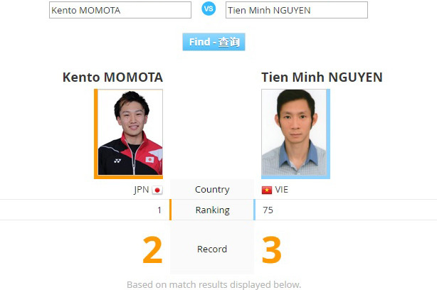 Kể từ năm 2012 đến nay, Tiến Minh và Momota có 5 lần đối đầu, trong đó tay vợt của Việt Nam thắng 3, thua 2. Tuy nhiên từ 2015 đến nay, Tiến Minh đều thua trắng 0-2 mỗi khi đối đầu đối thủ người Nhật Bản này, bởi đẳng cấp, tuổi tác lẫn phong độ.