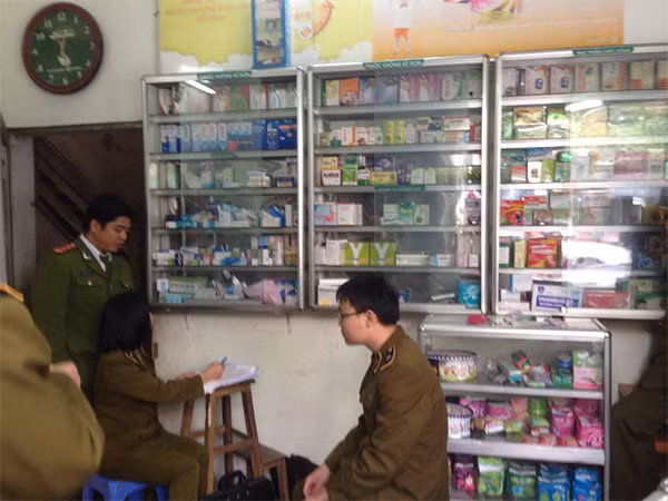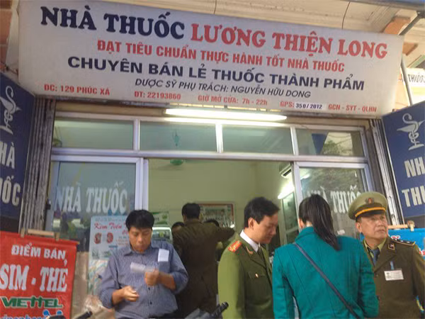 Lực lượng chức năng kiểm tra tại nhà thuốc 129 Phúc Xá