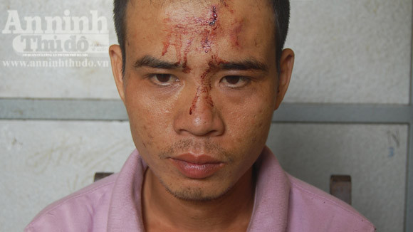 Đối tượng Trịnh Thành Vinh trong cơn nghiện đã tự đập đầu vào tường gây thương tích