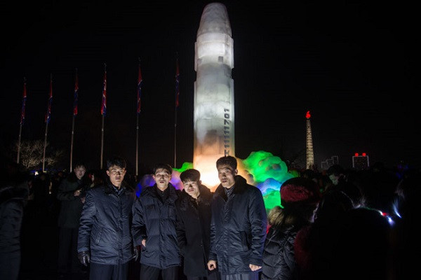 Bức tượng tên lửa bằng băng này được đặt ở quảng trưởng Kim Il-sung của thủ đô Bình Nhưỡng. Theo tờ Rodong Sinmun của Đảng Lao động Triều Tiên, đây là bức tượng mô phỏng tên lửa Hwasong-15 mà Bình Nhưỡng đã phóng thử nghiệm vào hôm 29-11.