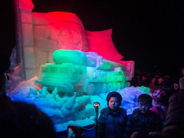 Bức tượng bằng băng trên được trưng bày chỉ ít lâu sau khi lãnh đạo Kim Jong-un tuyên bố nút phóng tên lửa luôn sẵn sàng trên bàn làm việc của ông trong tuyên bố đầu năm mới, đồng thời nhấn mạnh, Triều Tiên đã sở hữu tên lửa có tầm bắn vươn tới mọi vùng lãnh thổ của Mỹ.