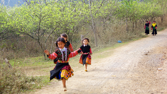 Đến Hang Kia một ngày phiên cuối năm, trong màn sương mờ phủ dày đỉnh núi trên cung đường ấy, trong cái giá rét căm căm của vùng cao. Những dòng người trong bộ váy áo mới, nhiều màu sắc của dân tộc Mông thuộc hai xã Hang Kia, Pà Cò (Mai Châu, Hòa Bình) xuống chợ phiên ngày chủ nhật với những sản vật của núi rừng. Trong tiết trời lạnh giá, không gian xung quanh khu chợ rực rỡ sắc màu hoa mơ hoa mận báo hiệu mùa xuân đã về trong bản. Len lỏi giữa những quầy hàng đông đúc, những cô gái người Mông xúng xính trong bộ trang phục rực rỡ sắc màu. Trên con đường dốc đứng về bản Hang Kia, những cô gái người Mông cúi rạp người với những gùi nặng trĩu đồ dùng cho ngày tết, tươi tắn bước đi trên con đường hoa trắng. Những đứa trẻ túm tụm thành từng nhóm dăm bảy đứa cùng nhau vui đùa, leo trèo trên những cành mận trắng rung rinh.