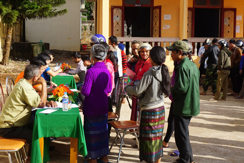 Vừa thấy đoàn công tác, ông Phạm Ngọc Long, Phó chủ tịch UBND xã Hướng Phùng, phấn khởi: “Biết đoàn công tác mang quà từ thiện vào, bà con đến từ sáng sớm. Địa bàn chúng tôi có 15 thôn thuộc xã Hướng Phùng chủ yếu bà con Vân Kiều nên cuộc sống còn rất khó khăn, họ chủ yếu trông nom vào bán buồng chuối, con lợn nhưng không phải hộ nào cũng có được tài sản ấy, bởi hầu hết nơi đây là đồi núi nên việc canh tác, phát triển chăn nuôi, trồng trọt hết sức khó khăn. Do đó việc làm ra tiền để đi chợ sắm tết là điều xa xỉ lắm. Với phần quà bà con được nhận hôm nay, họ cũng mua được đầy đủ mắm, muối thực phẩm để đón Tết cổ truyền”.