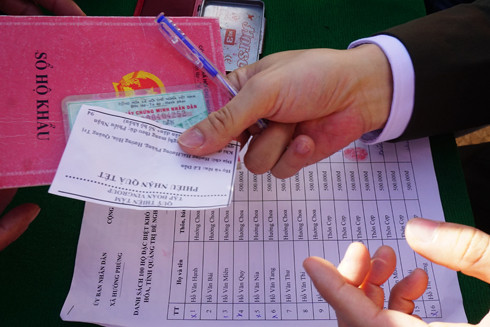 Những chiếc phiếu nhận quà của người dân do Đoàn công tác gửi lập trước đó để các xã lên danh sách cụ thể, chính xác