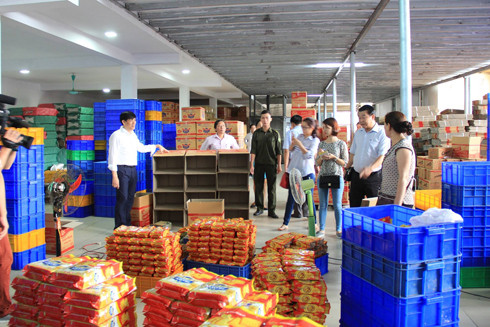 Chẳng hạn, tại cơ sở Tân Hoàng Gia (thôn Hoa Thám, xã La Phù), thời điểm đoàn thanh tra có mặt, ngay cửa vào xưởng sản xuất, các bao bột làm bánh, thùng carton chất thành đống lộn xộn. Phía bên trong, khu vực đặt dây chuyền sản xuất bánh quy, nhân kem bánh quy được chất đầy trong các thùng nhựa nhem nhuốc.