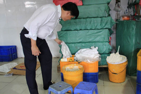 Thế nhưng trên thực tế, qua kiểm tra 3 cơ sở - đều là những cơ sở sản xuất quy mô khá lớn của làng nghề, đoàn thanh tra đã phát hiện 2 cơ sở vi phạm nhiều lỗi khác nhau, từ vệ sinh cơ sở, vệ sinh sản xuất cho đến nguồn gốc, nguyên liệu thực phẩm.