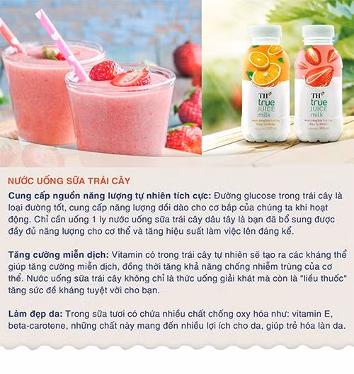 Ngày Tết với nhiều hoạt động thăm hỏi, vui chơi sẽ khiến cả gia đình không tránh khỏi tình trạng mệt mỏi, thiếu hụt năng lượng. Nếu đã quá ngán với các món ăn ngày Tết thì đừng quên chọn cho mình một chai nước uống sữa trái cây thơm ngon, bổ dưỡng để giải khát và tăng cường năng lượng nhé.