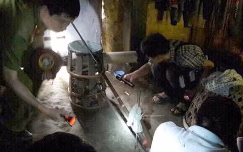 Khẩu súng kíp được Lở gài ở cửa với mưu đồ sát hại nốt người nhà nạn nhân trong vụ thảm sát 4 người ở Lào Cai (Ảnh: Công an Lào Cai)