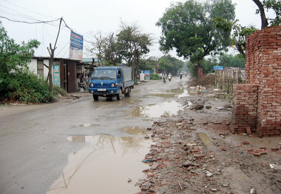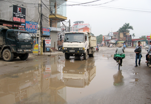 Do lượng xe trọng tải lớn chạy qua tuyến đường này ngày càng lớn nên mặt đường đã bị vỡ nát từ nhiều năm nay. Cùng với đó là hệ thống thoát nước của các khu vực dân cư trên con đường này có cũng như không… Do vậy, nước thải của các hộ dân và nước mưa đọng lại trên đường thành ao.