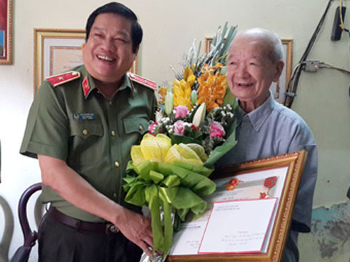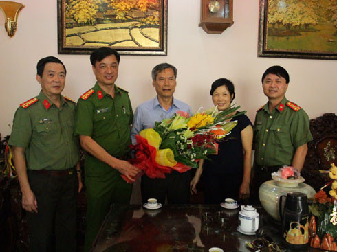 Đồng chí Thiếu tướng Lưu Quang Hợi, Phó Giám đốc CATP thăm và chúc mừng đồng chí Nguyễn Xuân Thảo, nguyên Bí thư Đảng ủy CATP