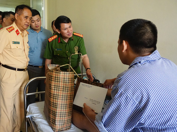 Đại tá Nguyễn Văn Viện, Phó Giám đốc CATP Hà Nội thăm hỏi, động viên cán bộ CSGT bị thương trong khi làm nhiệm vụ