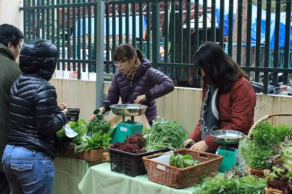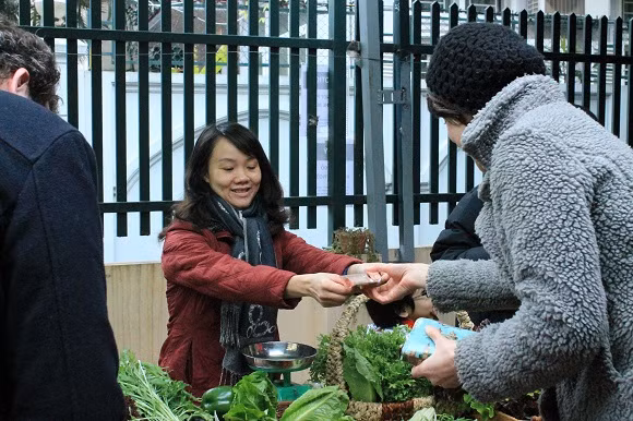 Chị Emma Lawrence đến từ Anh cho biết, việc đi chợ vào sáng thứ Bảy đã trở thành một thói quen của chị và con gái. Là cô giáo tại một trường mẫu giáo quốc tế, Emma đặc biệt quan tâm tới việc lựa chọn sản phẩm sạch cho gia đình. “Các loại rau củ này có thể mua được ở bất cứ cửa hàng nào tại Hà Nội, nhưng thực phẩm hữu cơ sẽ có lợi cho sức khỏe hơn. Giá của thực phẩm hữu cơ đắt hơn bình thường một chút, nhưng chất lượng thì tốt hơn rất nhiều”, chị cho biết.