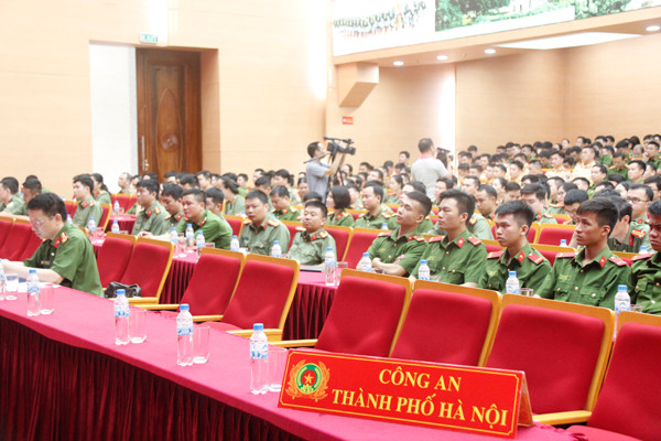 Các đại biểu dự hội nghị trực tuyến tại điểm cầu CATP Hà Nội