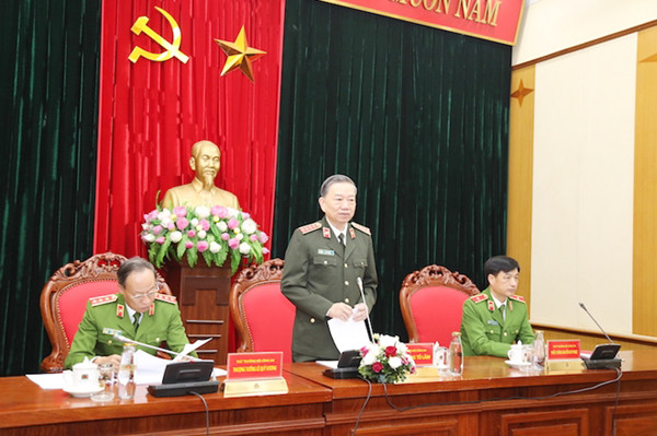 Bộ trưởng Tô Lâm nhấn mạnh việc tăng cường công tác xây dựng Đảng, xây dựng lực lượng CAND; nâng cao công tác giáo dục chính trị tư tưởng, lễ tiết, tác phong của cán bộ, chiến sỹ CAND. Tiếp tục thúc đẩy triển khai thực hiện Công an xã chính quy theo hướng dẫn, quy định và chỉ đạo của Bộ. Khen thưởng, động viên kịp thời những tập thể, cá nhân có thành tích xuất sắc trong bảo vệ an ninh quốc gia, đấu tranh phòng, chống tội phạm...