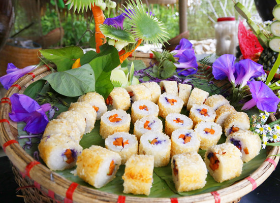 Thực khách cũng được tham gia quy trình chế biến những chiếc bánh dày thủ công từ gạo nếp nương bởi Khu du lịch Sun World Fansipan Legend đã bố trí sẵn những bộ chày – cối lớn và nguyên vật liệu để giã gạo và nặn bánh bằng tay.