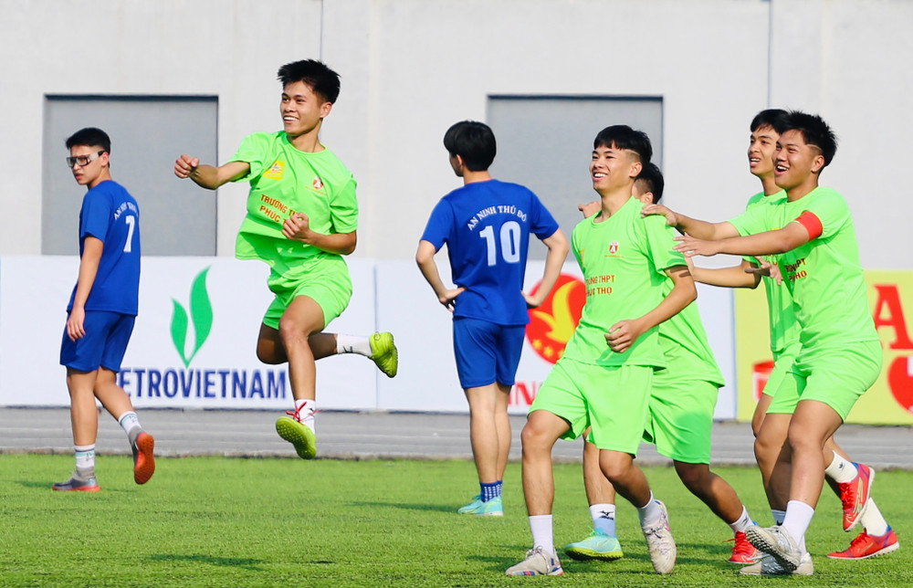 ANTD.VN - Dưới sự cổ vũ cuồng nhiệt của đông đảo cổ động viên có mặt trên sân Xuân Đỉnh, THPT Phúc Thọ chơi thăng hoa để chiến thắng tưng bừng 3-1 trước THPT Dewey OP và ghi tên vào vòng 32 đội.
