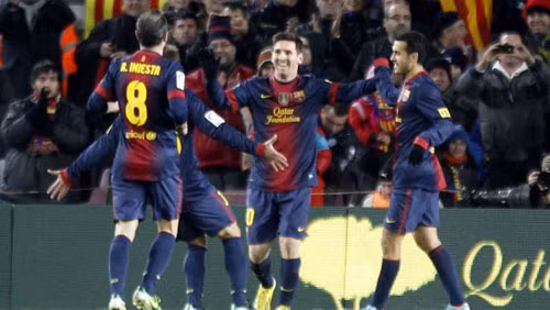 Phút 22, từ quả phạt góc do Messi thực hiện, Iraizoz xuất sắc cản phá cú dứt điểm của Cesc Fabregas nhưng Pique kịp thời có mặt nhẹ nhàng đưa bóng vào lưới trống ở cự ly gần. 1- 0 cho Barca. Chỉ 2 phút sau, Messi lên tiếng bằng bàn thắng rất điệu nghệ sau khi đón đường kiến tạo đẹp mắt của Xavi.