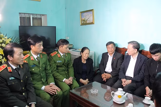 Như Báo ANTĐ thông tin, trước tinh thần quyết liệt đấu tranh với tội phạm, ngăn chặn tội ác, giữ nghiêm kỷ cương pháp luật và dũng cảm hy sinh vì bình yên cho người dân của các đồng chí Nguyễn Huy Thịnh, Phạm Công Huy và Thiếu úy Dương Đức Hoàng Quân, trong ngày 11-1, đồng chí Đại tướng Tô Lâm - Ủy viên Bộ Chính trị, Bộ trưởng Bộ Công an dẫn đầu đoàn công tác của Bộ Công an, đã đến từng gia đình để thăm hỏi, chia sẻ, động viên thân nhân những người cán bộ, người đồng đội.
