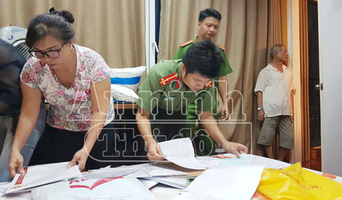Cơ quan An ninh điều tra thu giữ nhiều tài liệu liên quan tới hành vi giả danh công an lừa đảo của Đậu Thị Hương