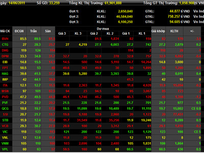 Sự sụt giảm của chỉ số về cuối phiên khiến cho số mã tăng giá trị tại phiên này chỉ còn 126 mã, số mã tăng tiếp tục giảm so với các phiên trước, trong khi số mã giảm lên tới gần 100 mã với sự góp mặt của một số mã bluechip và midcap như BVH, MSN, PAC, NKD, LHG, PVD, SFC…và 58 mã đứng giá tham chiếu. Vn-index nhùng nhằng về cuối phiên và kết thúc lại mất đi 1,15 điểm tương đương với 0,26% về mức 441,54 điểm.