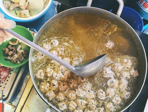 Bún mọc Điện Biên Phủ được nấu bằng măng khô, loại măng nứa xé nhỏ, rồi thì giò sống, mọc không được viên mượt mà khá thô. Đôi khi ăn cứ nghĩ, như là nhà mình nấu vậy. Lý do để hàng bún mọc này đông chắc cũng bởi nó “gây nghiện”, mà nguyên nhân nào “nghiện” thì chịu.