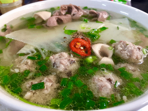 Nằm gần ngã tư Lương Ngọc Quyến - Tạ Hiện cũng có một hàng bún mọc được xếp vào hàng “nếu chưa ăn thì chưa được”. Xưa nay, hàng bún này không có biển hiệu, cũng toàn là khách quen đến ăn cả. Mới đây, chả hiểu duyên cớ gì, tự dưng treo một tấm biển nhỏ, đỏ chót. Bên trong thì căng một dòng chữ “Đề nghị không rửa thìa đũa vào lọ dấm”. Quán không quá đông, cũng không vắng, nói chung vừa đủ lượng khách để mấy chị em bà chủ quán thư thả làm. Điểm nhấn của bún vẫn là mọc, thịt được xay khá kỹ, đậm vị hạt tiêu mà ít bị ảnh hưởng bởi nấm hương và mọc nhĩ, tức là hai thứ phụ trợ đó chỉ là điểm xuyết.