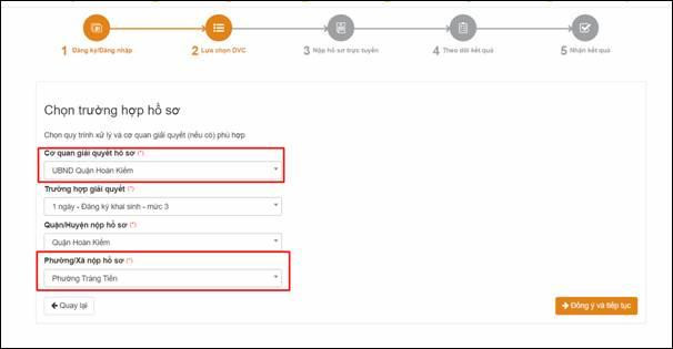Bước 4: Chọn cơ quan giải quyết hồ sơ