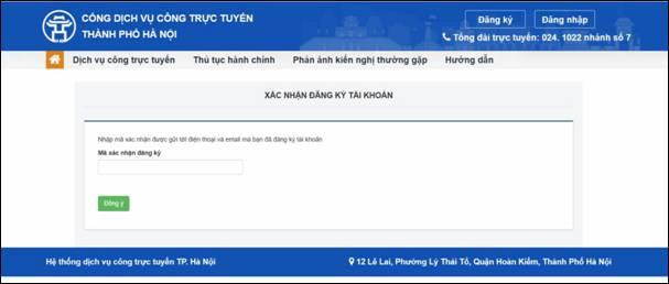 - Công dân, Tổ chức/Doanh nghiệp nhập Mã xác nhận đăng ký