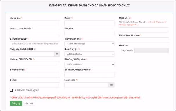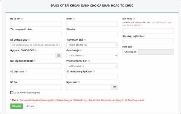 Cá nhân, Tổ chức/ Doanh nghiệp có thể đăng ký tài khoản.