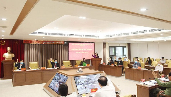 Các đại biểu biểu quyết thông qua Nghị quyết hội nghị lần thứ 23 của Ban chấp hành Đảng bộ TP Hà Nội