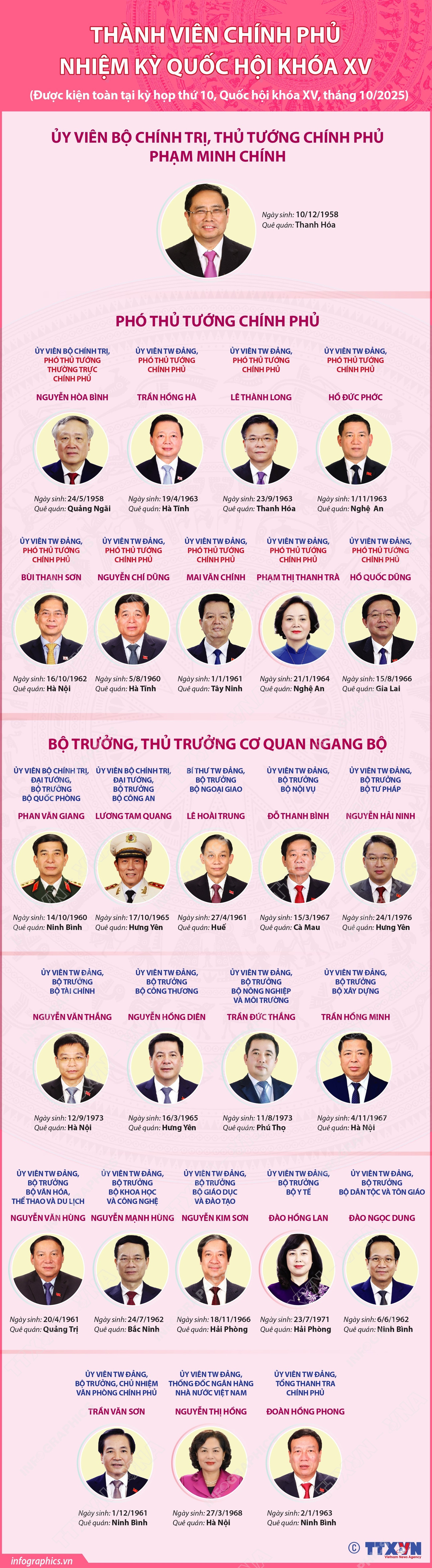 Thành viên Chính phủ được kiện toàn tại kỳ họp thứ 10, Quốc hội khóa XV, tháng 10-2025