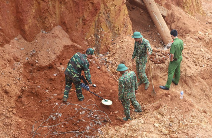 Lực lượng công binh rà tìm hầm đạn cối dưới chân đèo Bảo Lộc