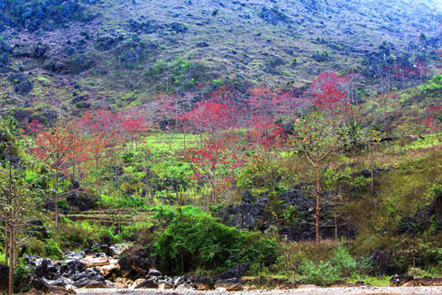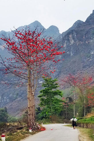 ANTD.VN - Khắp các nẻo đường trên cao nguyên đá xám Hà Giang, đâu đâu cũng thấy sắc đỏ của hoa gạo bao phủ cả không gian khi tháng 3 về. Trên những con đường đèo uốn lượn của vùng Đông Bắc như được “thắp sáng” hòa cùng màu xanh của núi rừng vẽ nên một bức tranh ở dải đất miền địa đầu Tổ quốc tuyệt đẹp.