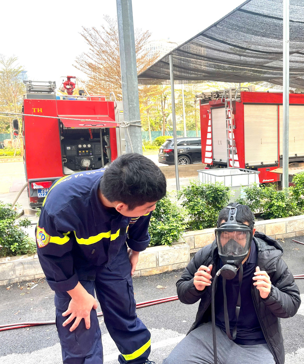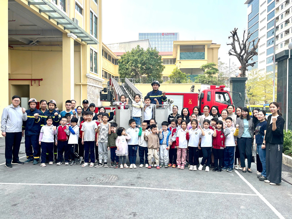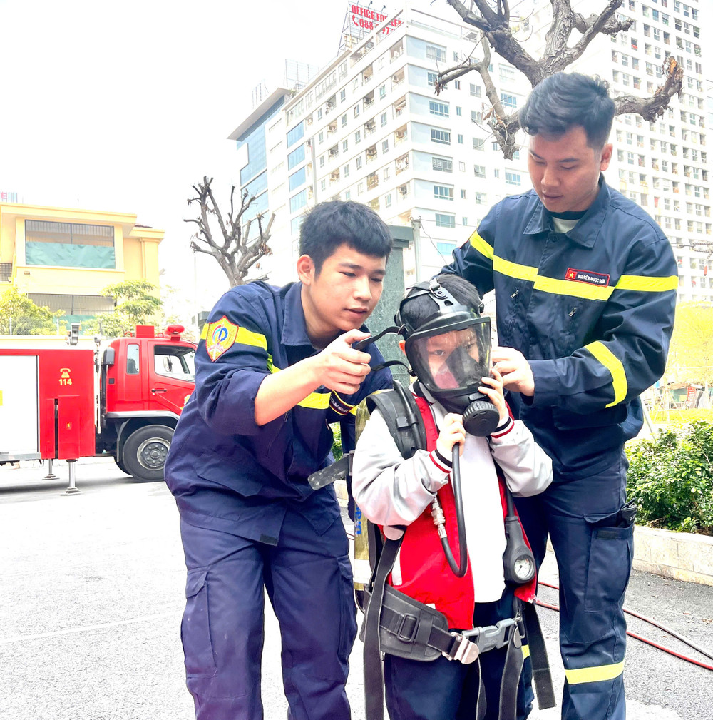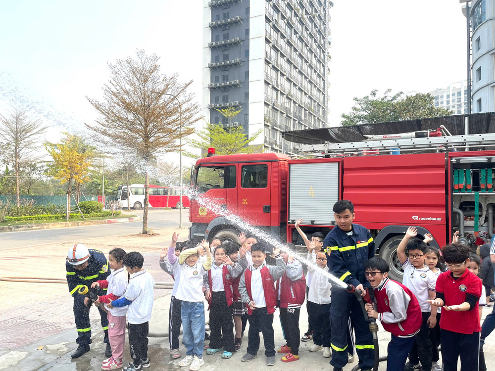 Thầy cô và trò trường Tiểu học Tứ Liên được trải nghiệm các kỹ năng PCCC và CNCH