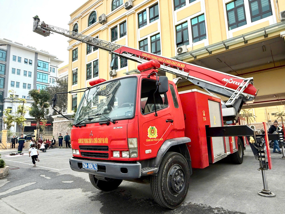 ANTD.VN - Tổ địa bàn PCCC và CNCH Tây Hồ, Phòng Cảnh sát PCCC và CNCH - Công an TP Hà Nội đã tổ chức tuyên truyền, trải nghiệm PCCC, thoát nạn cho phụ huynh học sinh và thầy và trò trường Tiểu học Tứ Liên.