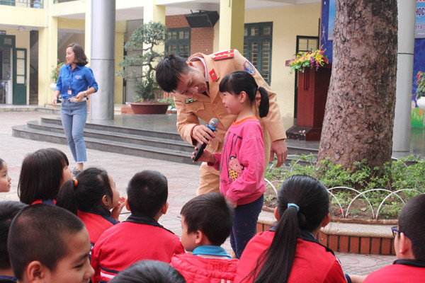 Nhưng khi báo cáo viên tiến gần hơn đến với các bạn học sinh, đưa ra những câu hỏi thú vị về cột đèn tín hiệu giao thông, hay câu hỏi về việc đi bộ khi tham gia giao thông, thì những ánh mắt hiếu kỳ ấy đã biến mất, thay vào đó là sự hào hứng tham gia đối thoại và ai cũng mong giơ tay cao nhất để được trả lời câu hỏi.