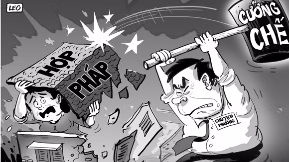 Về phía bị đơn đại diện là ông Hoàng Văn Lực - Phó chủ tịch UBND phường cùng vị cán bộ thanh tra xây dựng phường vẫn bảo lưu quan điểm như ở phiên tòa trước. Theo hai vị này, thể thức, trình tự cũng như thẩm quyền ban hành văn bản cưỡng chế của chủ tịch phường là đúng quy định pháp luật.
