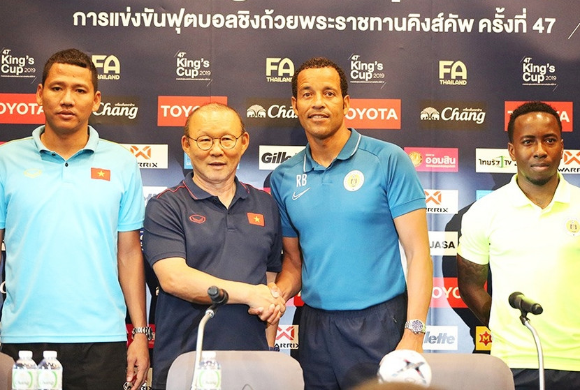 Hai HLV Việt Nam và Curacao bắt tay nhau trước trận chung kết King's Cup 2019
