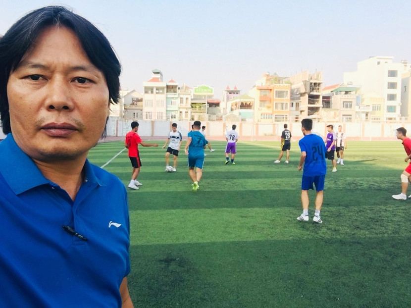 HLV Nguyễn Tiến Dũng trong buổi tập cùng các học trò