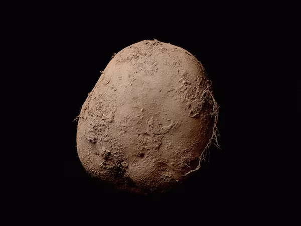Bức ảnh với tiêu đề “Potato #345 (2010)” được Kevin Abosch chụp theo phong cách sở trường của mình, là hình ảnh một củ khoai tây nổi bật trên nền đen.