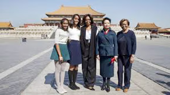 Bà Obama và bà Bành Lệ Viện chụp ảnh lưu niệm Tử Cấm Thành