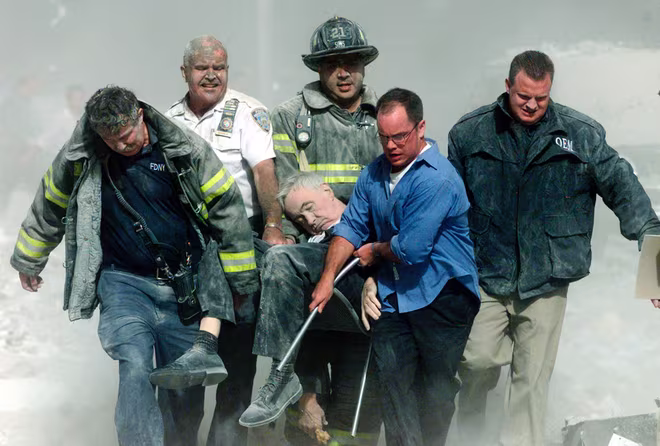 Lực lượng cứu hộ kéo nạn nhân khỏi đống đổ nát trong vụ khủng bố kinh hoàng 11-9