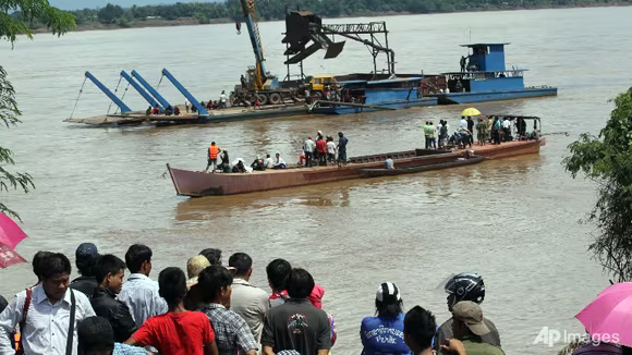 Một phần thân của chiếc ATR-72 đã được đưa lên khỏi mặt sông Mekong