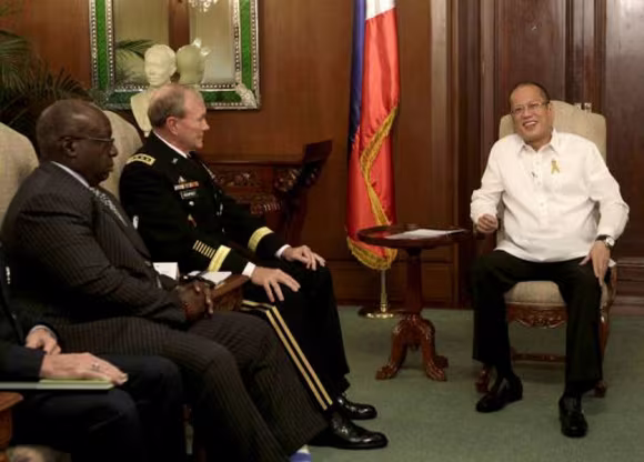 Ông Martin Dempsey (giữa) trong cuộc gặp với Tổng thống Philippines Benigno Aquino
