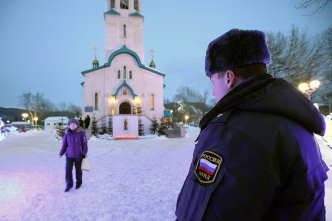 Cảnh sát đã bắt giữ người đàn ông 24 tuổi này ngay tại hiện trường và đang cố gắng xác định lí do anh ta lại có hành động như vậy ở nhà thờ Orthodox, thành phố Yuzhno-Sakhalinsk. Anh này làm việc cho một công ty vệ sĩ trong thành phố và được trang bị súng ngắn. Tên người vệ sĩ vẫn được giấu kín.