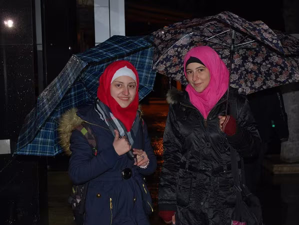 Niềm vui hiện rõ trên khuôn mặt của hai cô gái xinh đẹp sống ở Aleppo